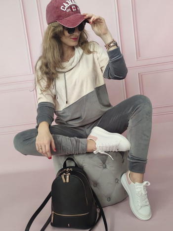 Komplet dresowy MALWINA z kapturem, śmietankowo-szary