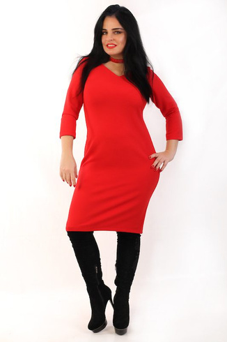 Sukienka z dzianiny WAFELEK, rękaw 3/4 czerwona