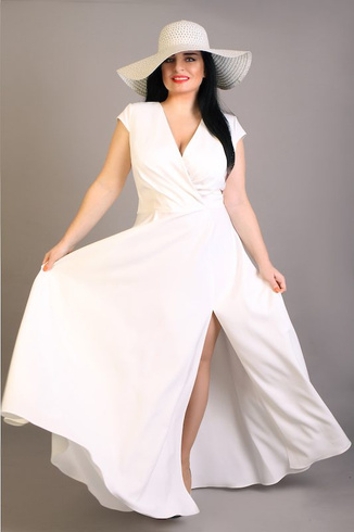 Ecru długa sukienka wieczorowa BELLA ELEGANZA – luksusowa prostota w dużym rozmiarze
