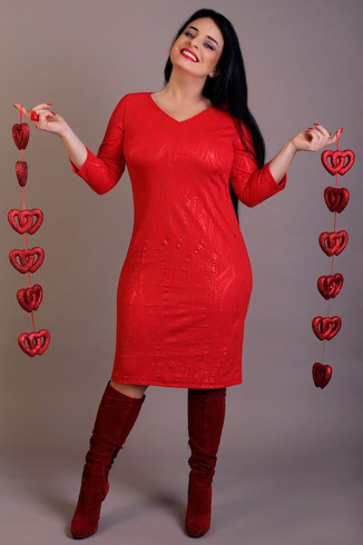 Sukienka z dzianiny WAFELEK, rękaw 3/4 czerwona