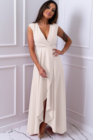 GRACIA - Długa suknia z gładkiej tkaniny, ecru