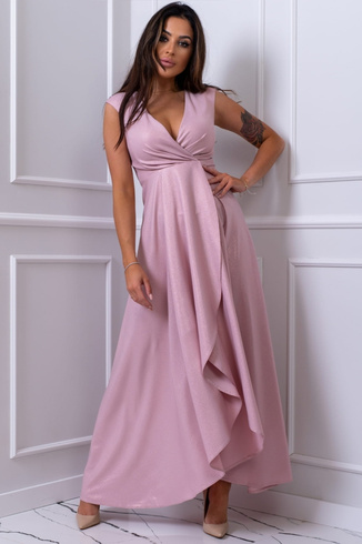 GRACIA - Długa suknia z brokatowej tkaniny, pudrowy róż