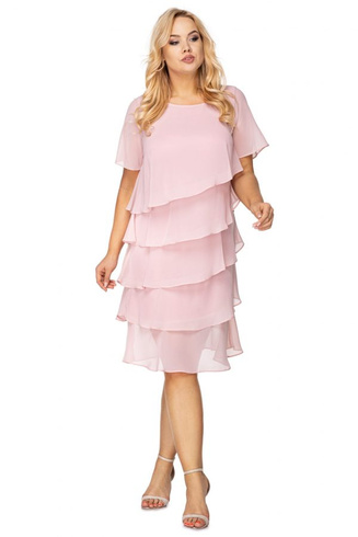 Pudrowo różowa sukienka z falbankami MELANIA