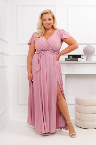 Śliwkowa brokatowa sukienka ANGELIKA maxi – elegancja w rozmiarze plus size