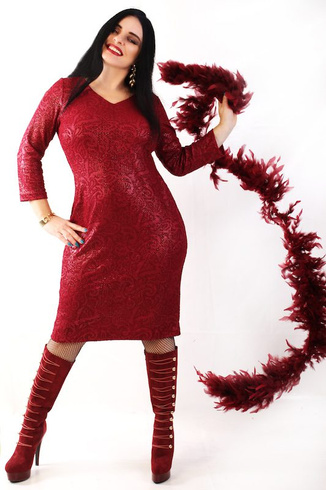 Sukienka dzianinowa wytłaczana z brokatem, bordowa