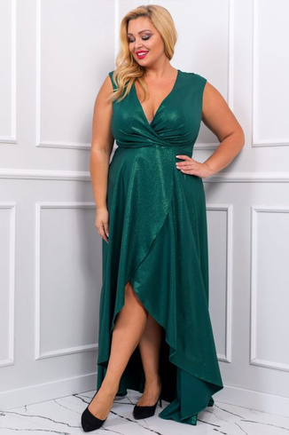 GRACIA - Długa suknia z brokatowej tkaniny, zielona
