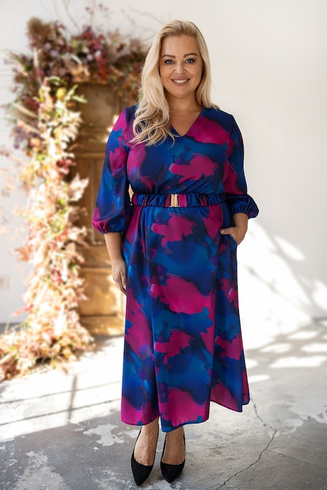 Fuksjowo-śliwkowa długa sukienka brokatowa AMAYA – elegancja w dużym rozmiarze