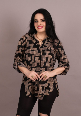 Beżowa czarna koszula z rękawem 3/4 SPRING